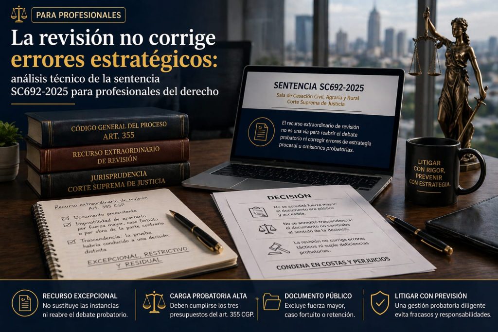 En la formación jurídica, uno de los mayores desafíos para los estudiantes es comprender que no todos los errores cometidos en un proceso judicial pueden corregirse después. Muchas veces se piensa que, si un juez decide en contra, siempre existirá un recurso para “arreglar” lo que salió mal. La sentencia SC692-2025 de la Corte Suprema de Justicia demuestra que esa idea es equivocada.